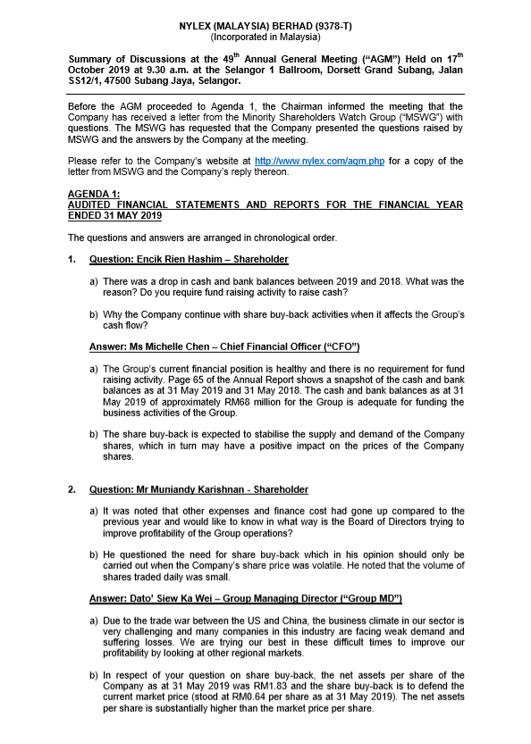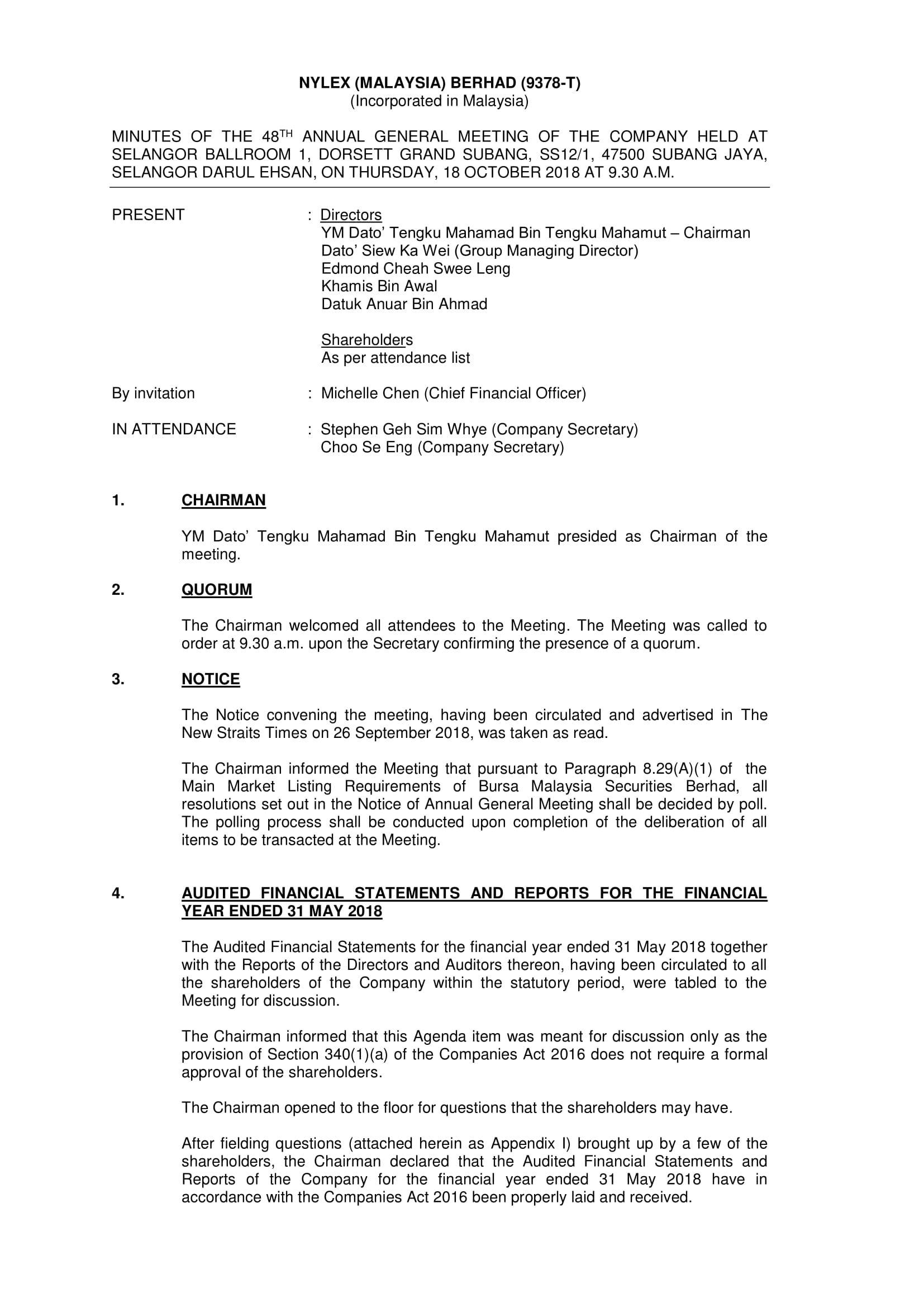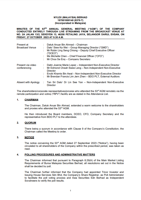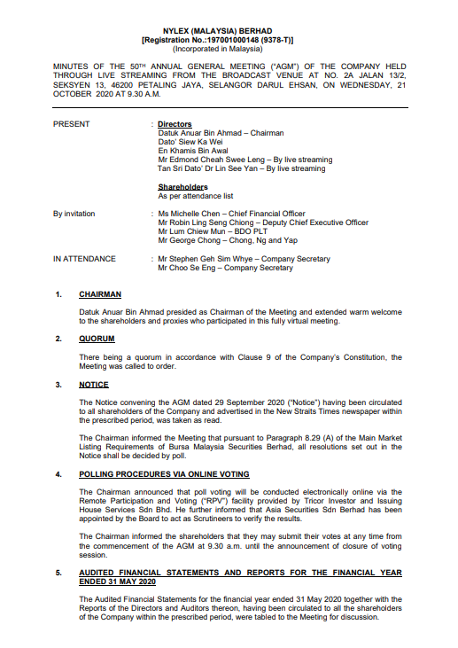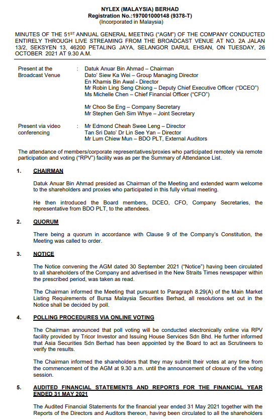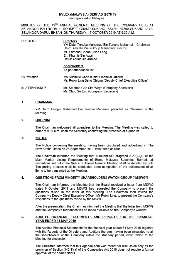 Minutes of AGM