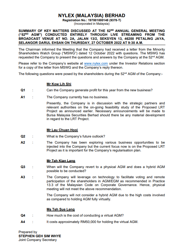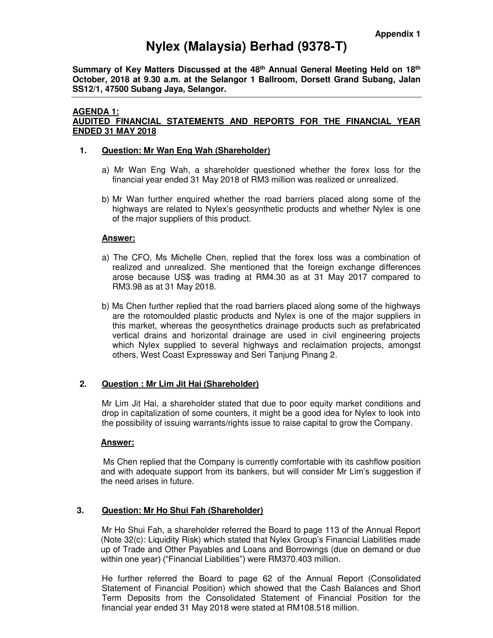 AGM Key Matters