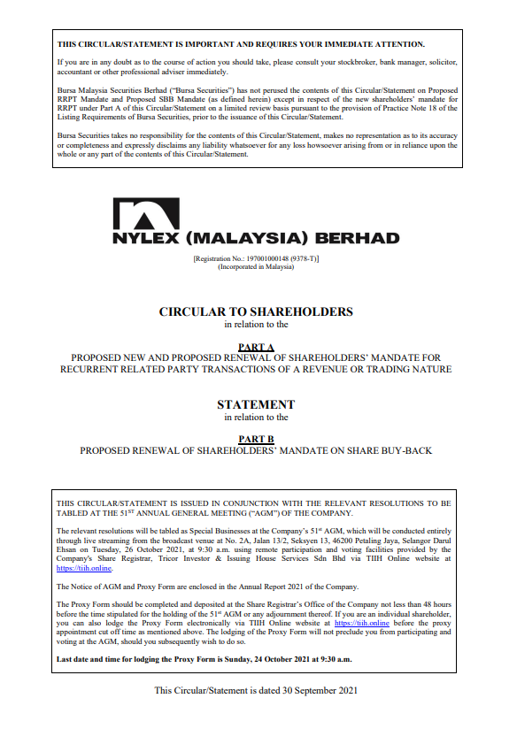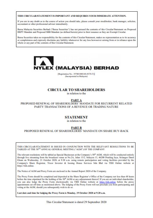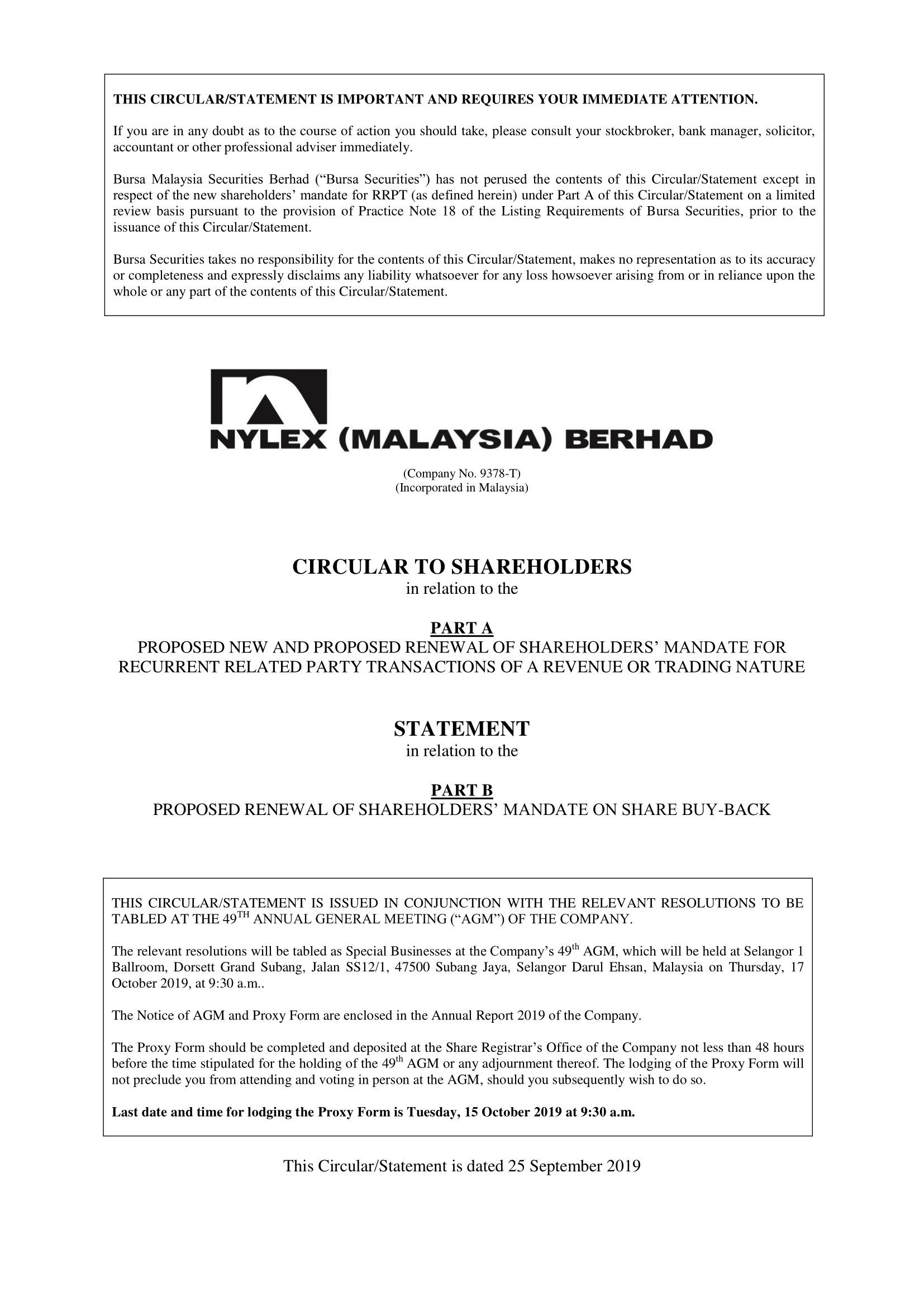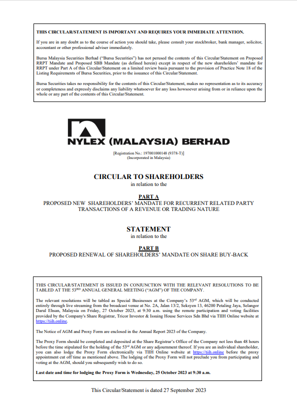 Circular/Statement to Shareholders