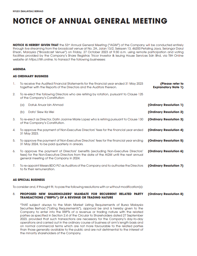 Notice of AGM