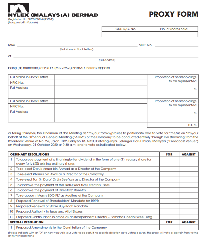 Proxy Form 2020