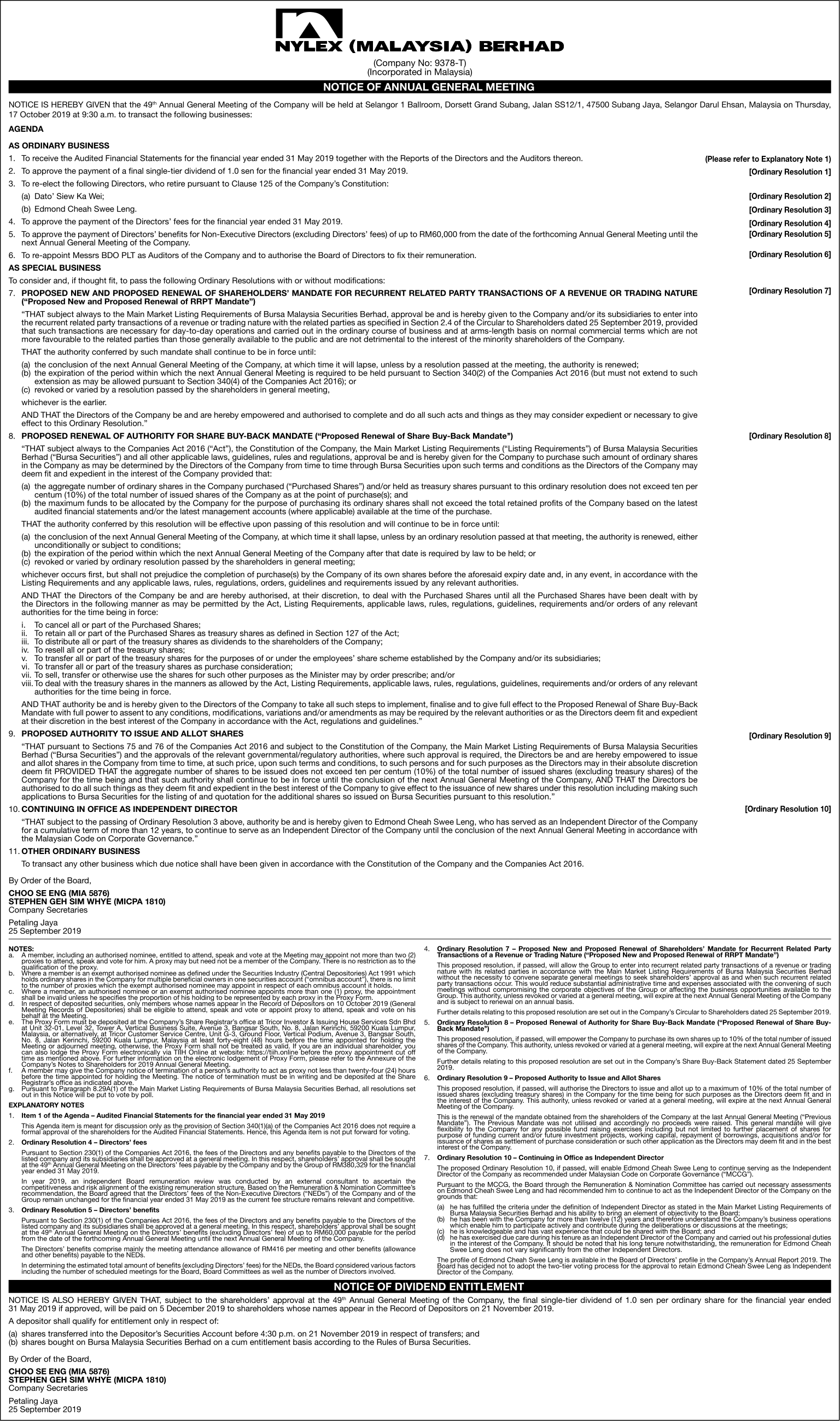 Notice of AGM 2020